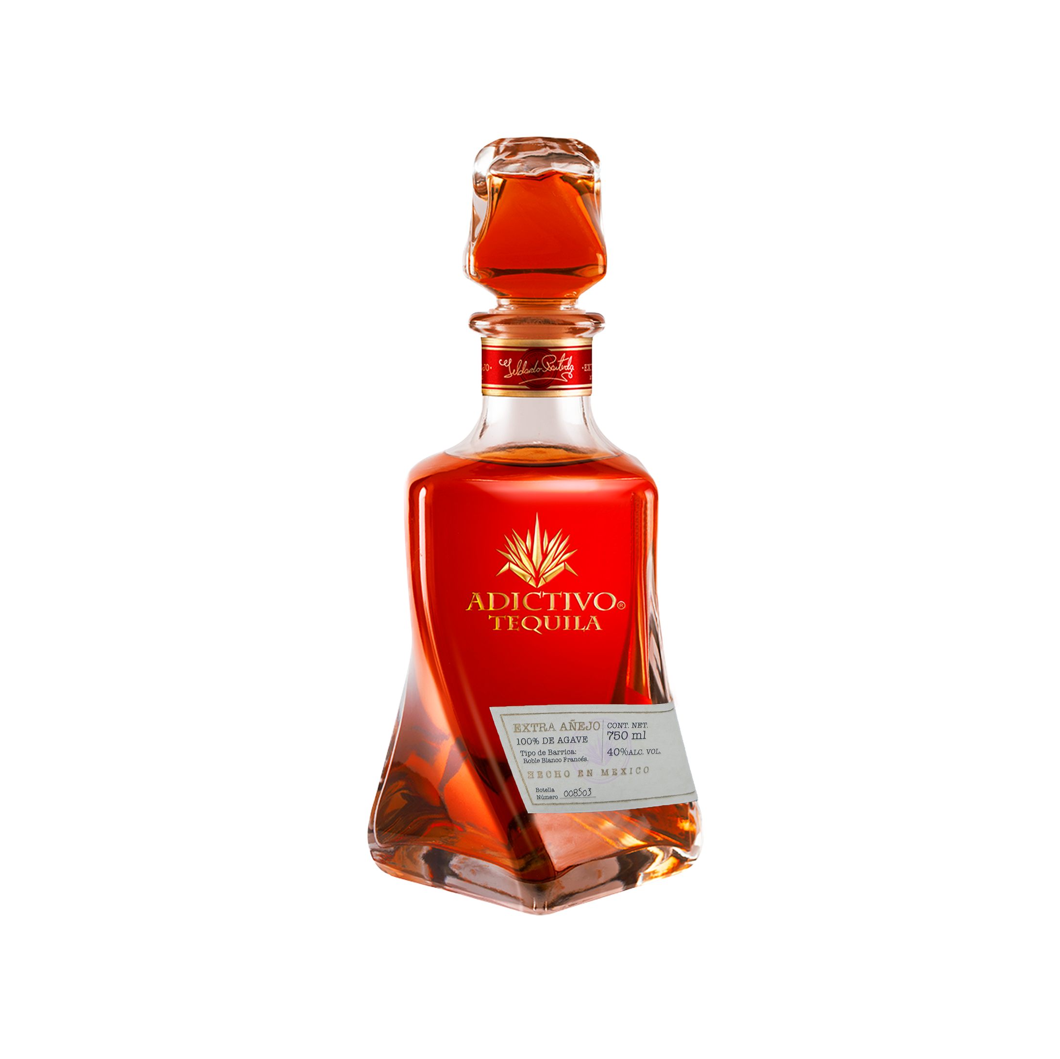 Tequila 100% puro Agave Azul, color ámbar oscuro con matices rojizos, excelente sabor tostado, y aromas frutales dulces.