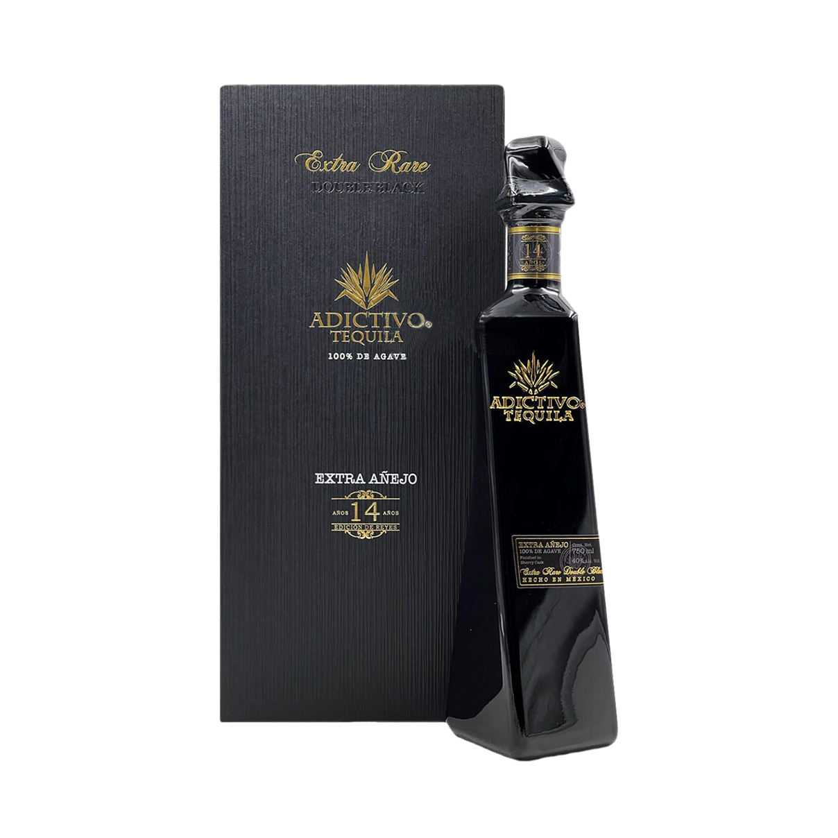 Tequila 100% puro Agave Azul, madurado durante 14 años y terminado en Barricas de Jerez. Color rojizo oscuro y fuertes notas de madera, en una botella y estuche color negoro con detalles dorados denotando sofisticación, lujo y exclusividad.